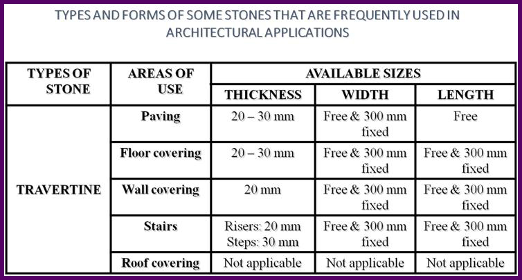Dimension of Travertine Stones in its Different Applications